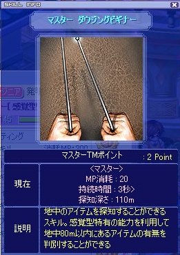 ダウジングビギナーは失敗無いしいいスキルですよね。今まで意地はって覚えてませんでした/(^O^)\何か損した気分。